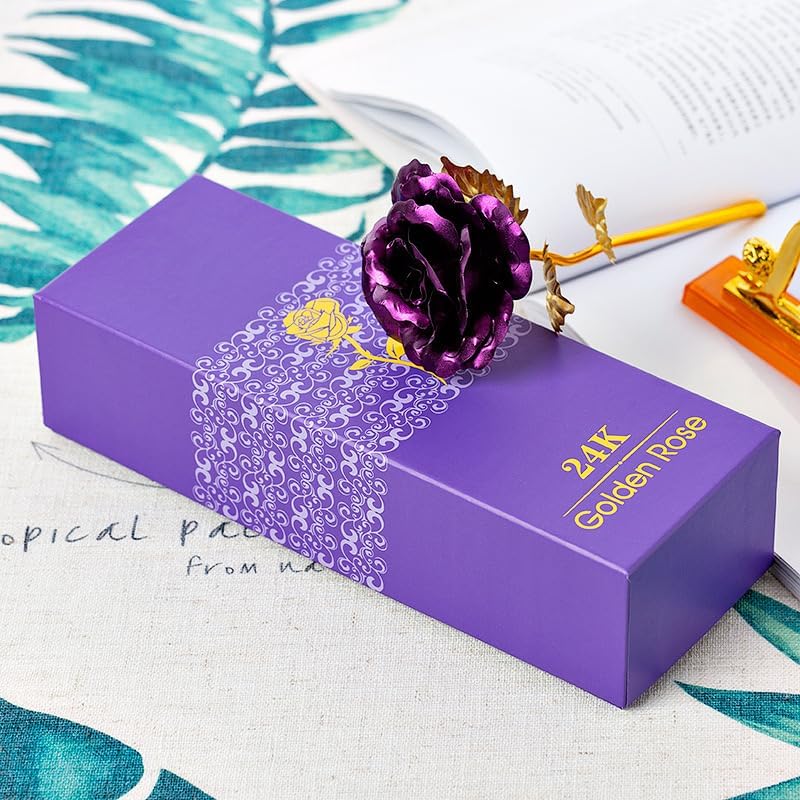 24k gold rose symbolizes unique love----Best Gift for Anniversary, Birthday, Thanksgiving, Christmas, Valentine's Day, New Year, Mother's Day, Wedding and so on. Gold rose flowers with transparent Love Stand, For your love to be felt and romance to be heard. Just as Rose represents the loyalty of love, Gold represents the nobleness of love, and the combination of the two means eternal and love. Rose Different Meaning: Red rose is a symbol of passion, enthusiasm and warm love. Blue rose means attractive, mysterious, miraculous and extraordinary. Pink rose is first love, Romantic and fresh love.✨ One of a kind art piece in the world✨ Each rose is carefully selected from rose bushes,It takes over 3 months handmade and 65 steps to make just one piece; Every Rose Gold Plated rose is precious and naturally different; She is so special and definitely deserves everything unique Specifications: Color: 24k gold rose Net Weight: 0.96oz Package Weight: 11.68oz Pruduct size (L x W x H): 11.02 x 2.75 x 2.75 In Package Size (L x W x H): 12.4 x 4.1 x 3.4 In Package Includes: 1x 24K Gold Rose 1x Transparent Stand 1x Gift box with magnetic closure 1x Gift Bag
