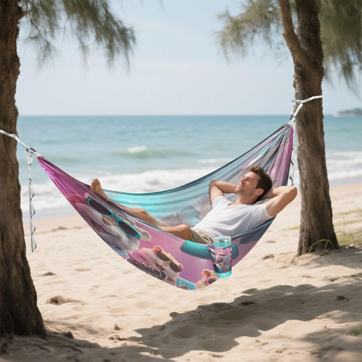 Reliable Outdoor Relaxation This practical hammock delivers comfort and convenience for outdoor enthusiasts using quality materials and thoughtful engineering. Technical Details Material: 100% polyester (210T taffeta body; 600D polyester straps) Hardware: Aluminum carabiners Load Capacity: 500 lbs (227 kg) Packed Size: Approx. 7 x 5 inches (18 x 13 cm) Durable Construction Reinforced triple-stitched seams at stress points Quick-drying material Practical Applications Camping and backpacking Hiking rest breaks Beach and park outings Family relaxation Travel and festivals Package Includes 1. Hammock 2. Straps (2m each) 3. Carabiners 4. Storage sack Designed for Easy Use Sets up in minutes without tools. The balanced design provides stable support, while the breathable fabric prevents overheating during extended use.