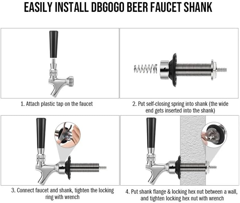 This American-style beer faucet tap is a reliable addition to any homebrew or commercial kegerator system, designed for wall-mount installation and efficient beer dispensing.Featuring adjustable shank lengths (62mm, 100mm, 127mm), it can accommodate wall thicknesses from 11mm to 100mm, making it versatile for various setup needs. Constructed with a 304 stainless steel core and chrome-plated brass exterior, this faucet is durable, corrosion-resistant, and easy to clean. It requires a 23mm drilled hole for installation, offering a seamless fit with your kegerator. The foam-reducing design ensures smooth, consistent pours, minimizing waste and enhancing the overall beer-drinking experience.Ideal for homebrewing enthusiasts and small commercial venues, this beer faucet tap combines functionality, durability, and ease of use for reliable draft beer dispensing.==========Material : Stainless steelOrigin : Mainland China