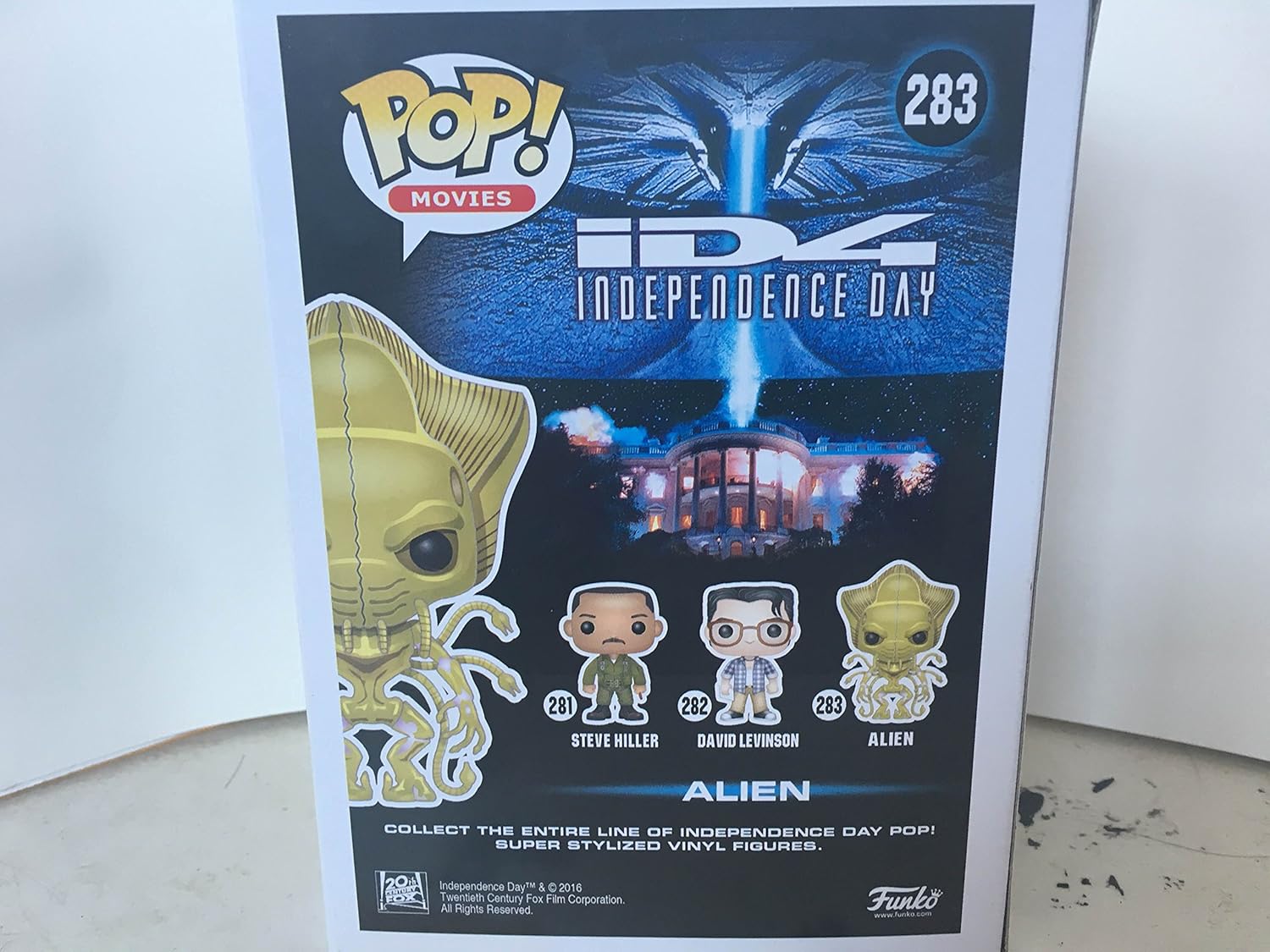 **CHASE VERSION**The alien menace from the classic film Independence Day has never looked cuter! This Independence Day Alien Pop! Vinyl Figure features the hostile extraterrestrial in its biological suit! Standing about 3 3/4-inches tall, this figure is packaged in a window display box. Ages 14 and up.Funko POP! Figures sometimes show minor paint variations from the manufacturer. Funko does not consider these as defects and as such, they may not be returned due to flaws in the paint.