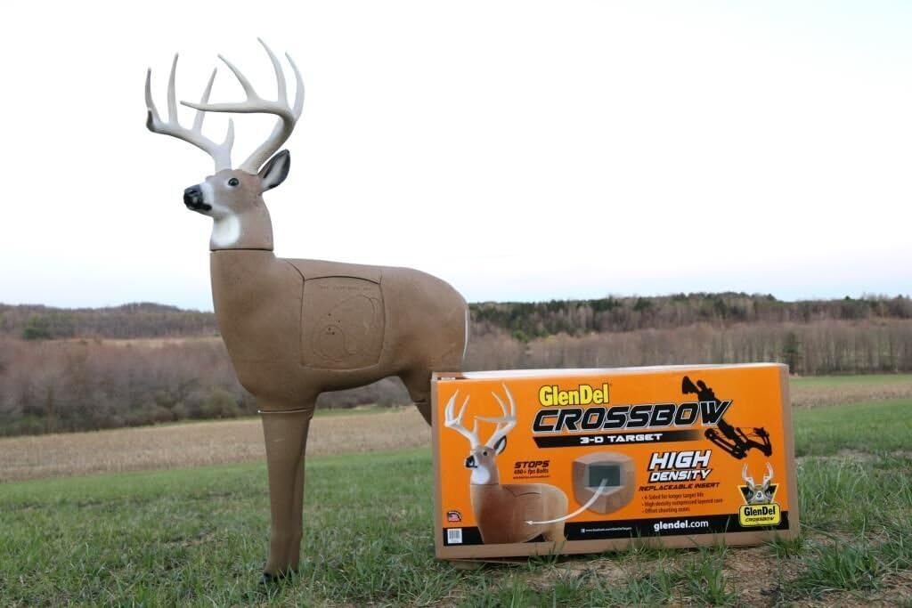STOPS ALL BROADHEADS & FIELD TIPS! Use with your Compound, Crossbow & Longbow. The GlenDel CROSSBOW Buck has a body size of a 200lb. live weight deer and offers 5 times the insert-shooting surface of comparable 3-D deer targets. Shoulder Height: Stands 34” at the shoulders. Total Height: 56” Rack Size: 150” B&C antlers. Insert Size: 11” X 11” X 11” and Made in the USA!