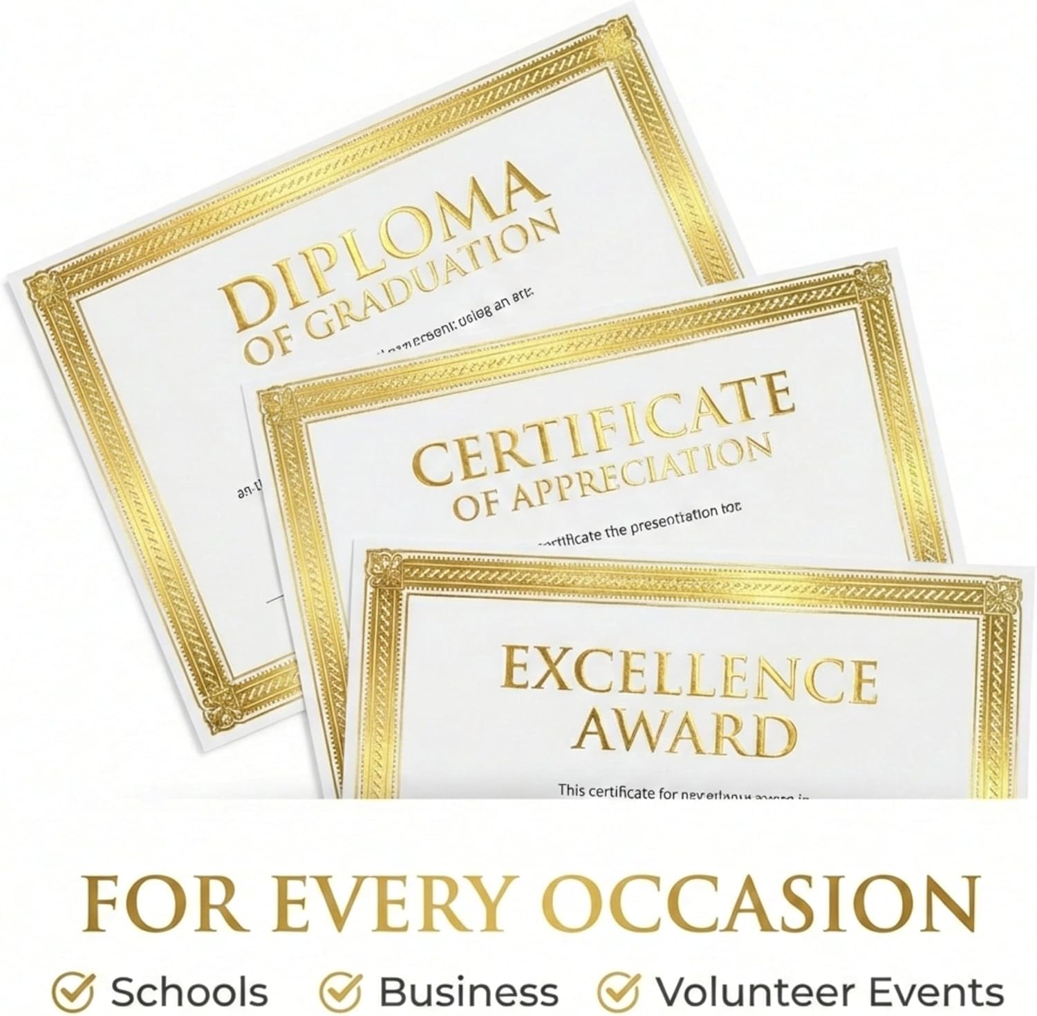 | Material Features | 38Lb Heavy Paper Stock, Metallic Foil Ink Border |
